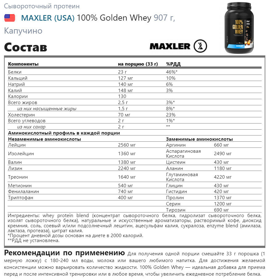 СохранитьПротеин Maxler 100% Golden Whey, 908 гр., капучино интересное: