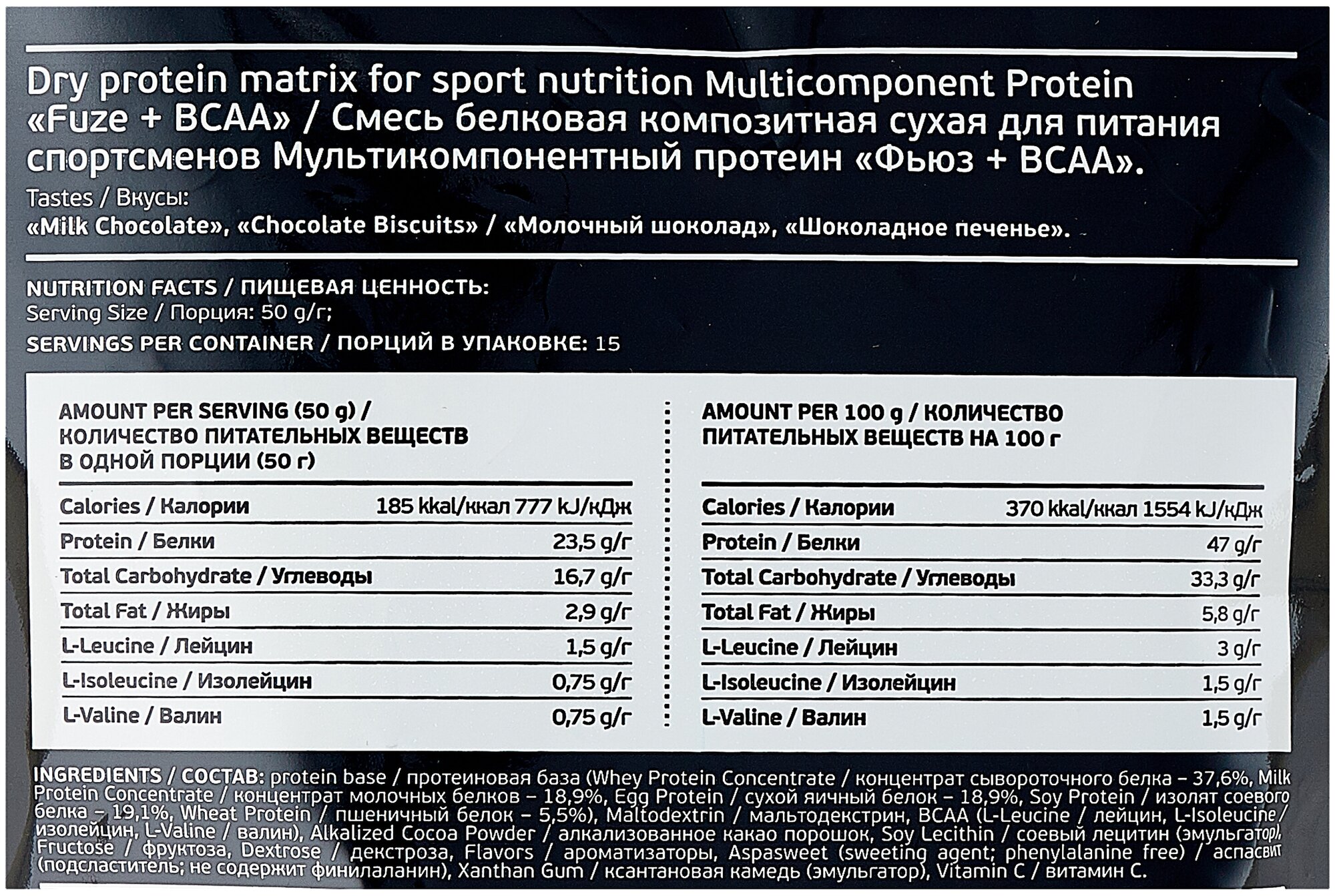 Fuze Мультикомпонентный протеин Фьюз 47% + BCAA , вкус «Шоколадное печенье», 750 г, Fuze