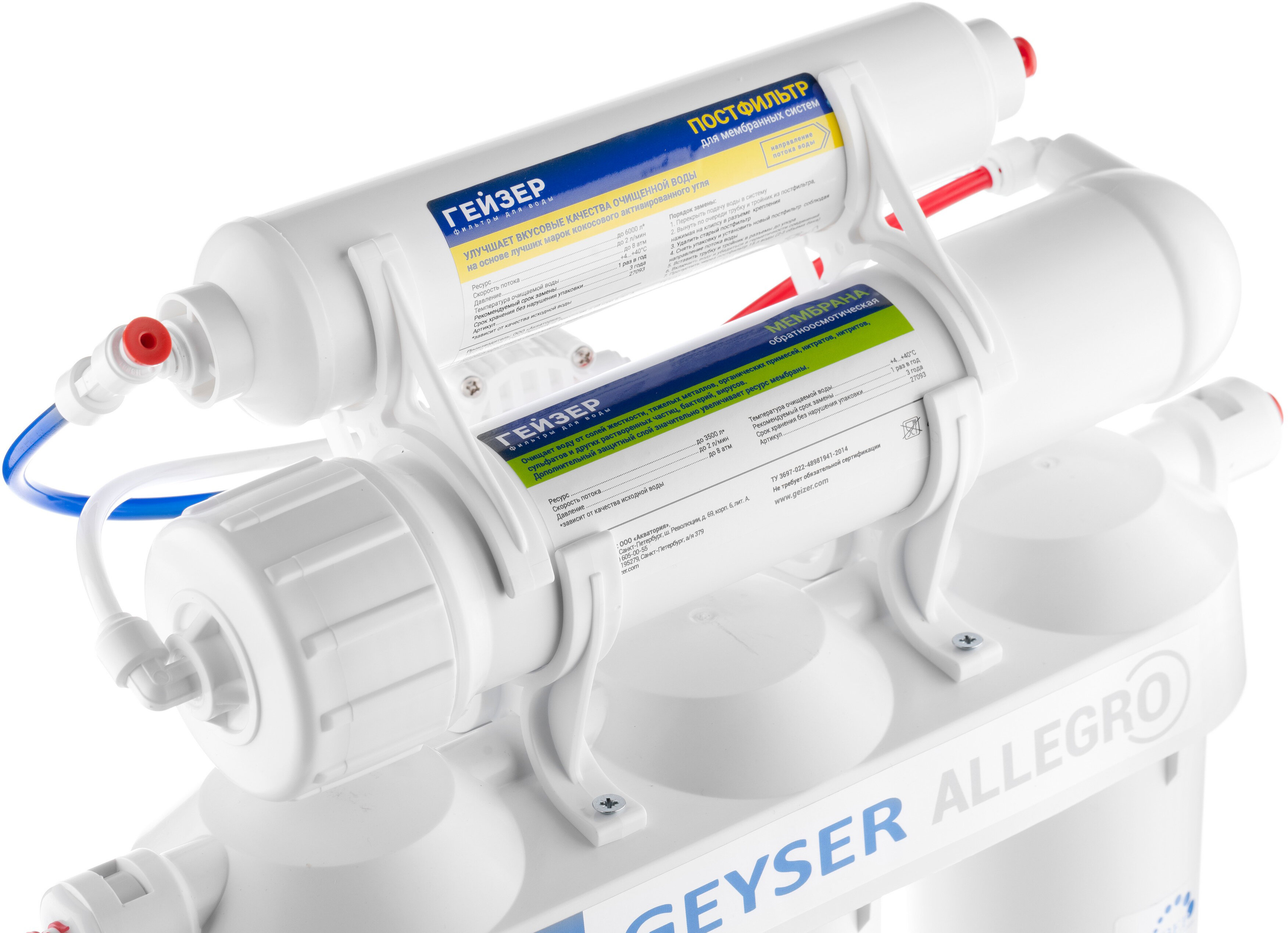 Система обратного осмоса Гейзер Аллегро, глубокая очистка воды от различных примесей, включая бактерии и вирусы, 20036