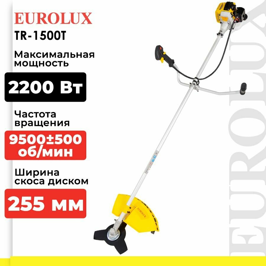 Бензиновый триммер / мотокоса TR-1500T Eurolux (2200 Вт, 9500±500 об/мин, леска 460 мм, нож 255 мм, антивибрационная система)
