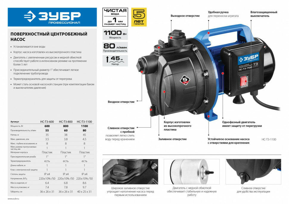 Поверхностный насос Зубр НС-Т3-1100