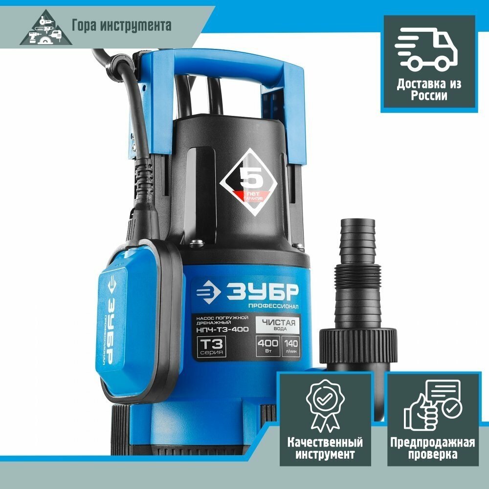 ЗУБР Профессионал НПЧ-Т3-400 дренажный насос с минимальным уровнем откачки, 400 Вт