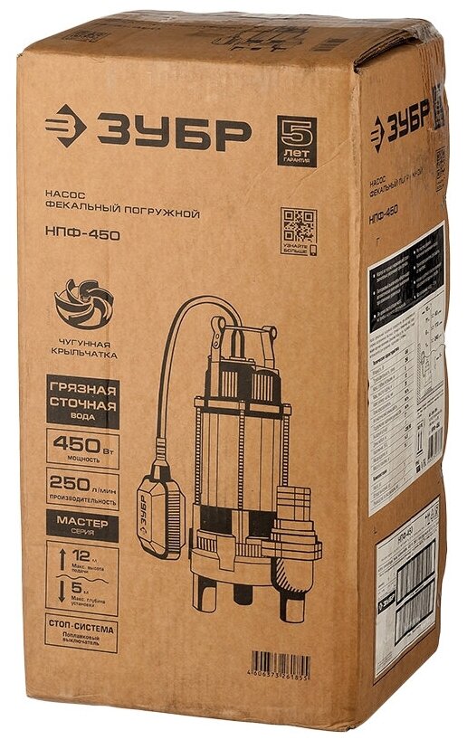 ЗУБР 450 Вт, фекальный насос (НПФ-450)