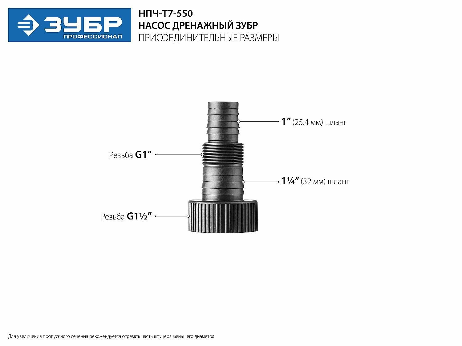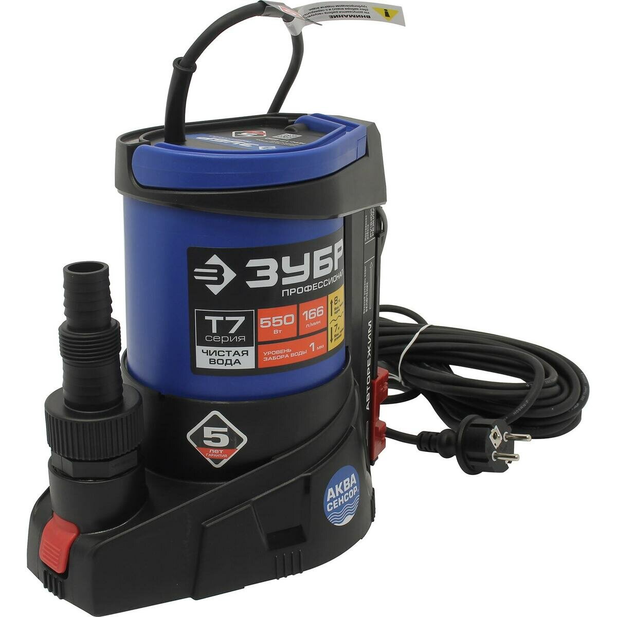 ЗУБР 550 Вт, 166 л/мин, насос погружной дренажный для чистой воды НПЧ-Т7-550 Профессионал