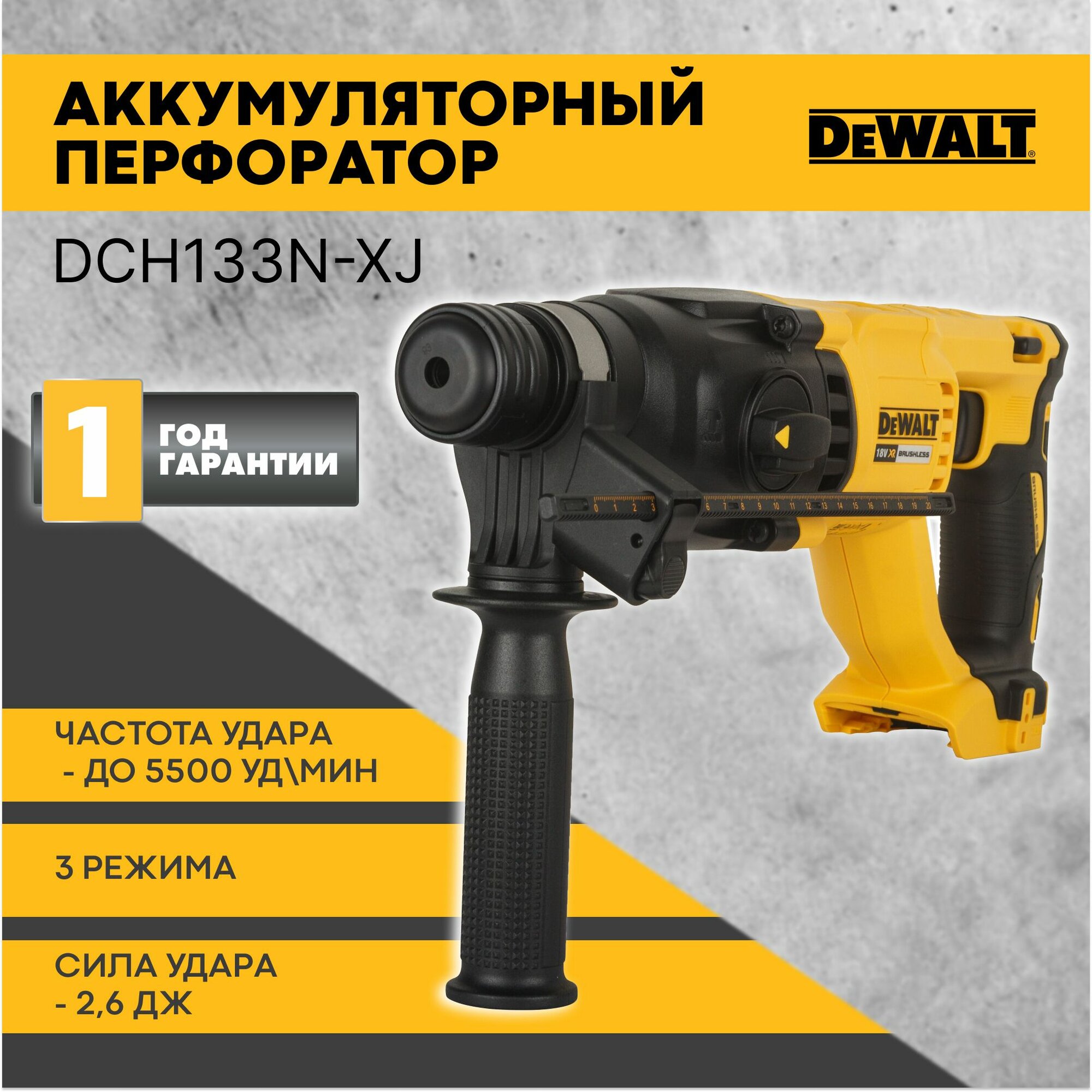 Аккумуляторный перфоратор SDS-Plus DEWALT DCH133N-XJ 18.0 В XR бесщеточный 2-кг перфоратор SDS-Plus,3 режима,эн.удара 2.6 Дж,без батарей и з/у