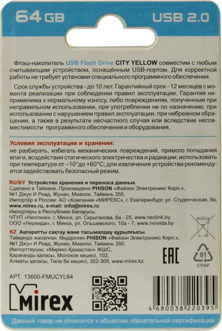 Флешка 64GB Mirex City 13600-FMUCYL64