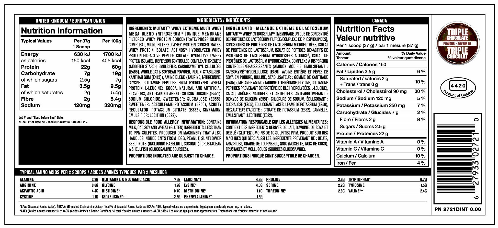 Mutant Whey 908 gr can, 25 порции(й), тройной шоколад