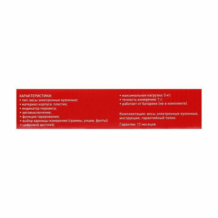 Весы кухонные LuazON LVK-501, электронные, до 5 кг, белые Luazon Home 1147001 .
