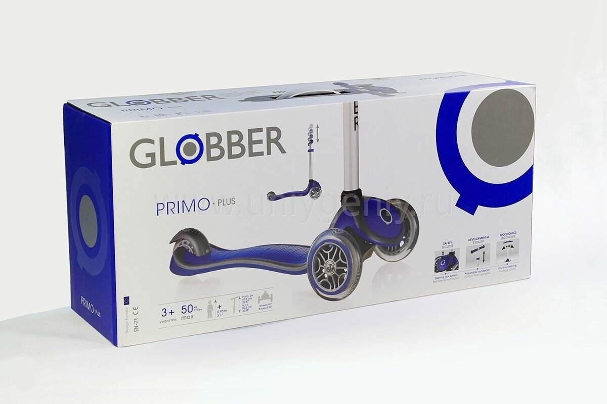 Купить Самокат Globber Primo Plus (Глоббер Примо Плюс) Голубой 440-101