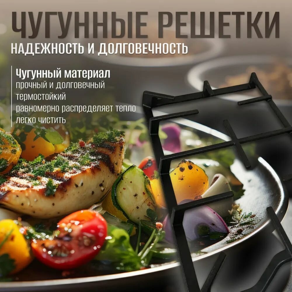 2. Крепкие чугунные решетки, кастрюли не качаются 3. Хорошие размеры горелок, разные размеры горелок; 4. Электророзжиг встроенный, просто класс И все это за очень небольшие деньги. Я довольна, спасибо производителю. |