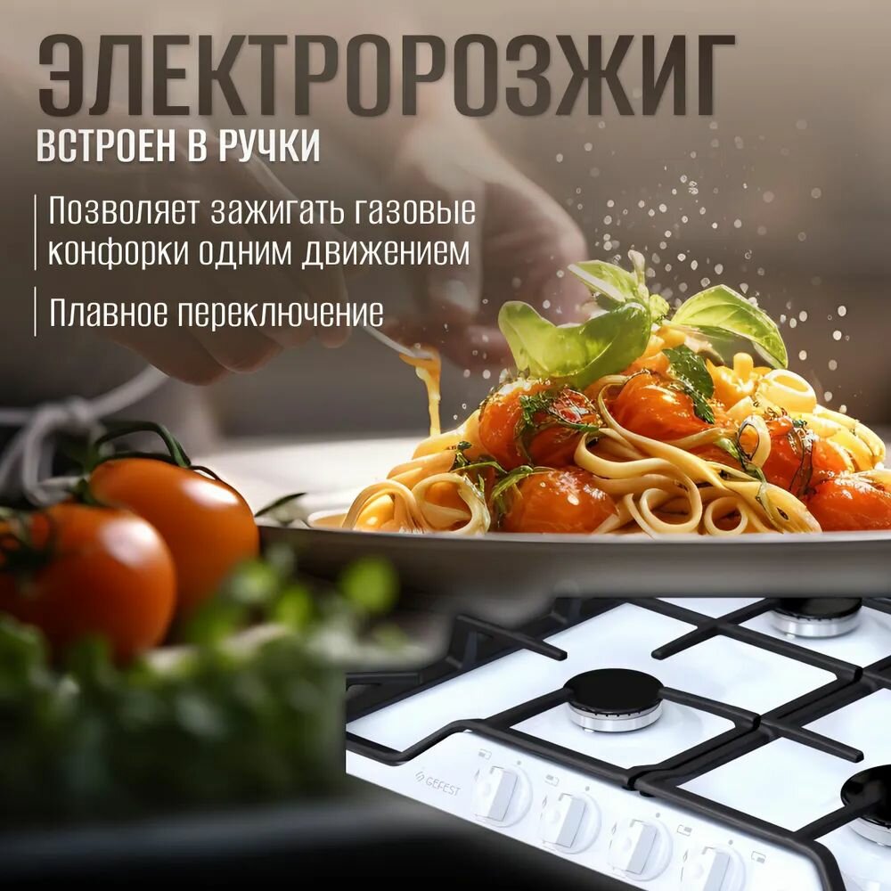 Варочная панель газовая GEFEST ПВГ 1212 /БЕЛ., розжиг, г/к, чугун. решетки/