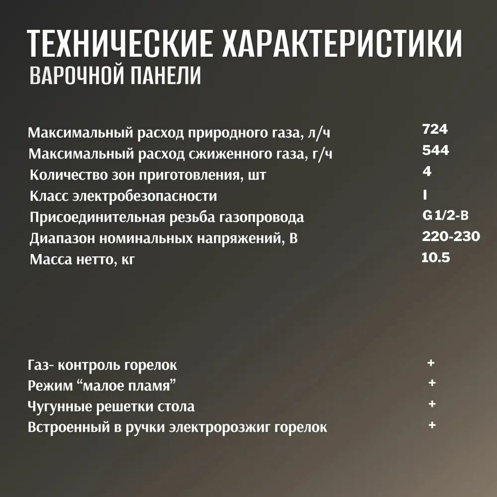 | Всего конфорок | 4 |