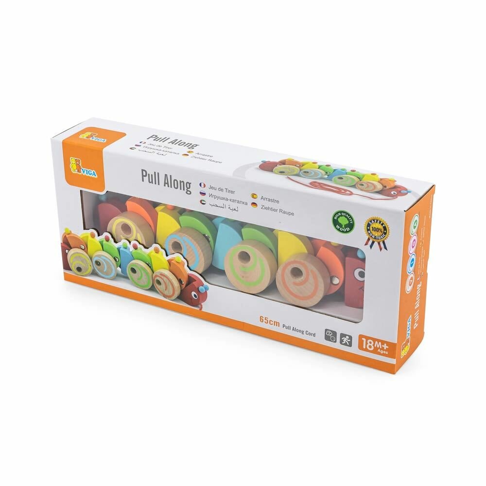 Каталка на веревочке "Гусеница" в коробке VIGA 59950