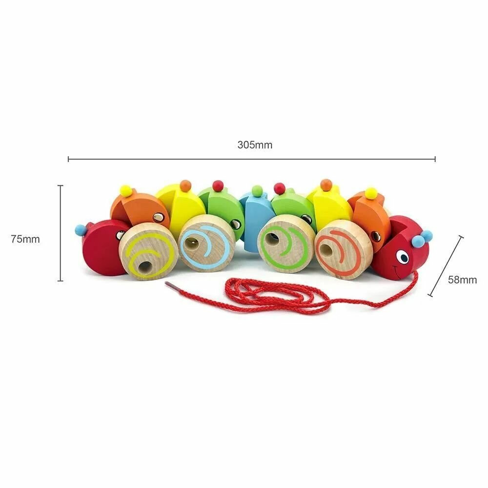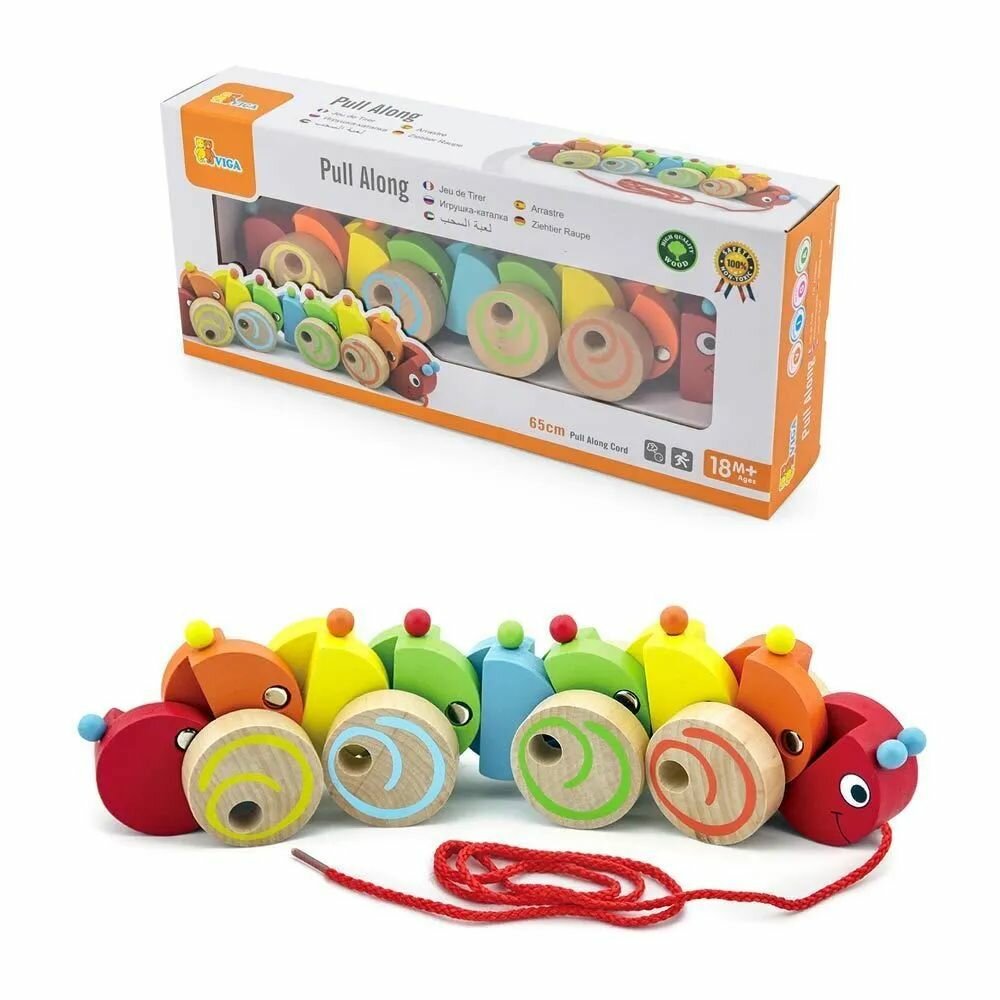 Каталка на веревочке "Гусеница" в коробке, VIGA 59950