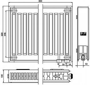 Радиатор Kermi с нижней подводкой FTV тип 22 0608 600x800x100 мм