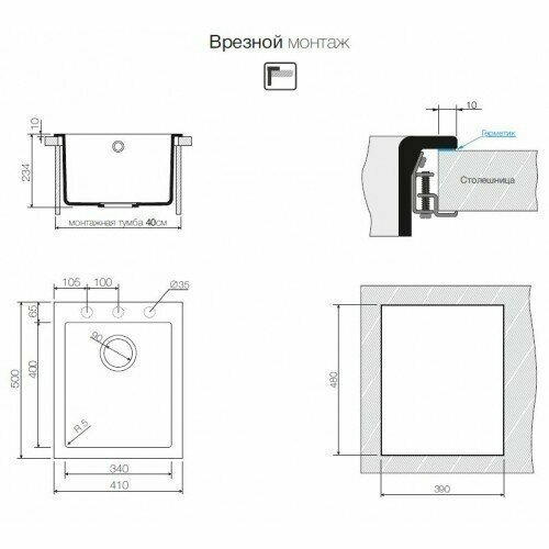 | Установка | врезная |