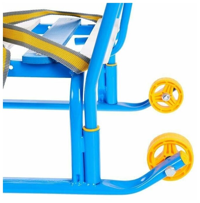 | Плюсы: | Яркий дизайн, есть ремни безопастности, кол?сики на полозьях |