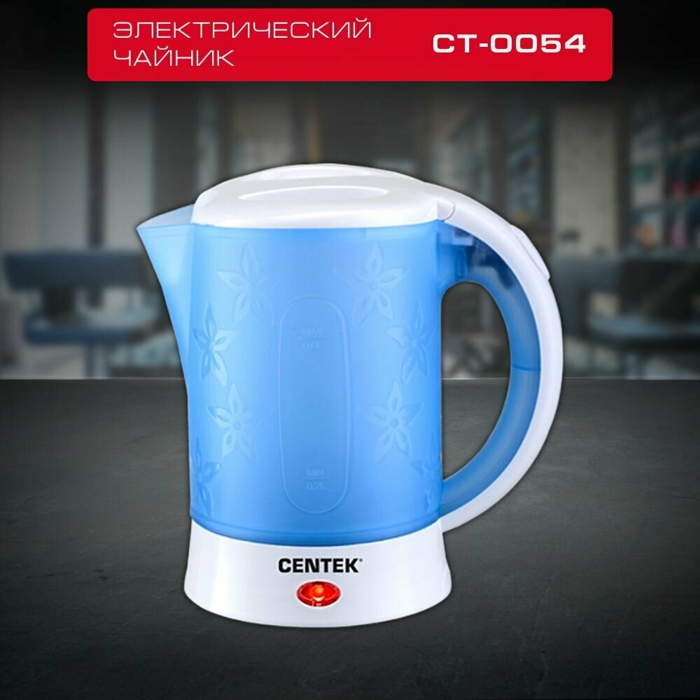Электрические чайники Centek Чайник электрический Centek CT-0054 Blue, пластик, 0.6 л, 650 Вт, бело-синий