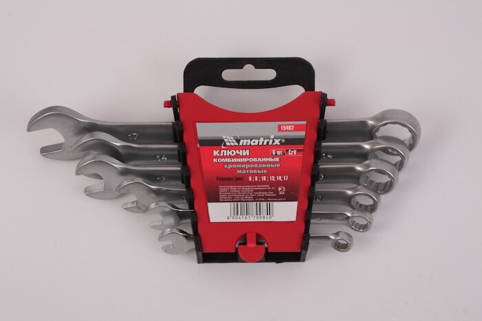 Набор ключей комбинированных Matrix 15402, 6 - 17 мм, CrV, матовый хром, 6 шт Matrix 9404692 .
