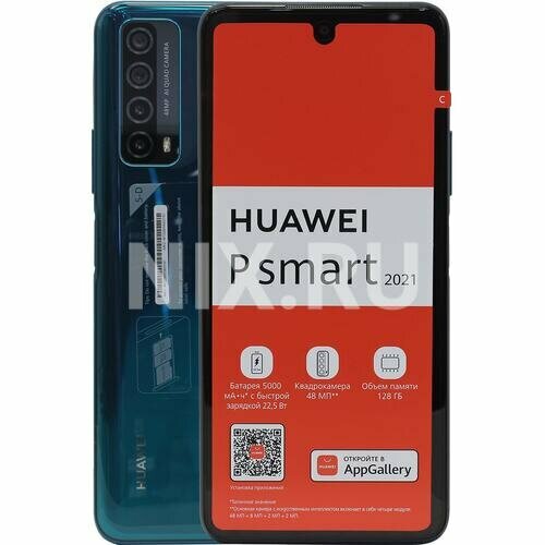 Смартфон P smart 2021 128 гб RAM 4гб зеленый наличие 3G LTE OS Android/Screen 6.67" 1080 x 2400 IPS-LCD Dual SIM 1xUSB type C 1xразъем для наушников 1xслот MicroSD карты 2xлоток под карту типа