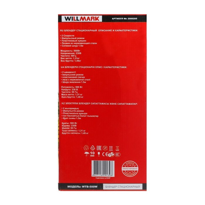 Блендер стационарный Willmark WTB-500W