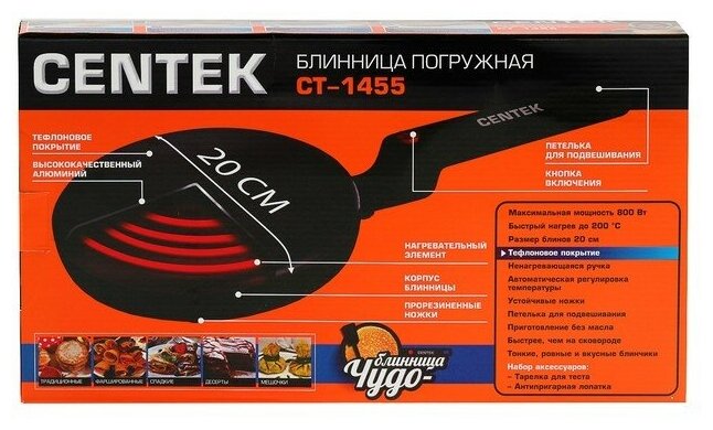 Блинница погружная Centek CT-1455, 800 Вт., D 20 см., чудо-блинница, антипригарное покрытие
