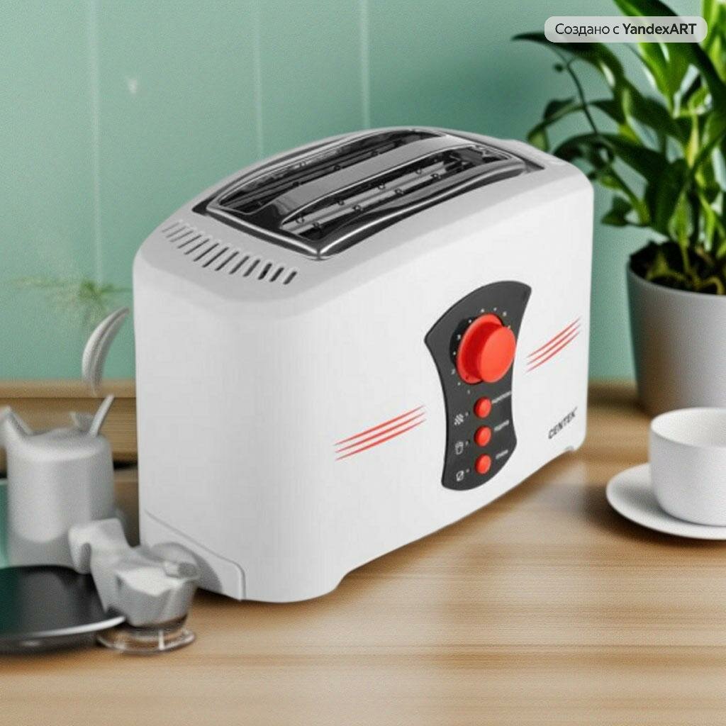 Тостер Centek СТ-1426, 800Вт, 7 степеней обжарки, разморозка, подогрев, белый