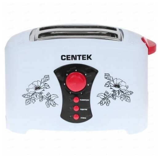 Тостер Centek СТ-1426, 800Вт, 7 степеней обжарки, разморозка, подогрев, белый