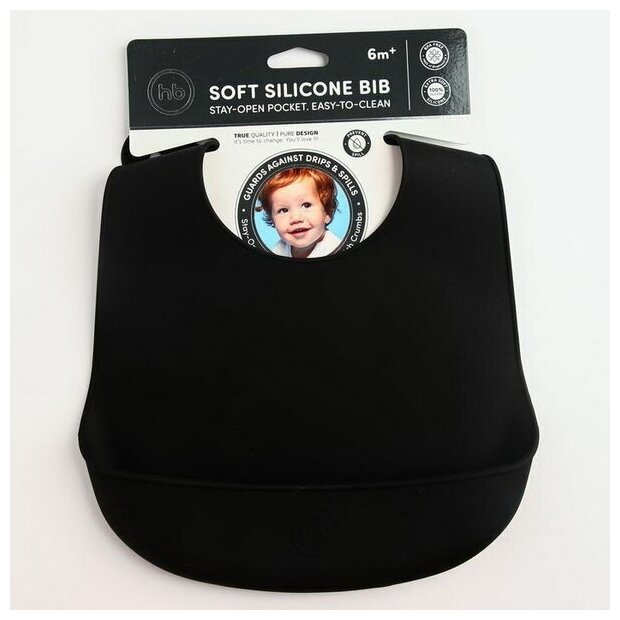 Купить Нагрудник силиконовый Happy Baby с кармашком, мягкий, легкий, черный