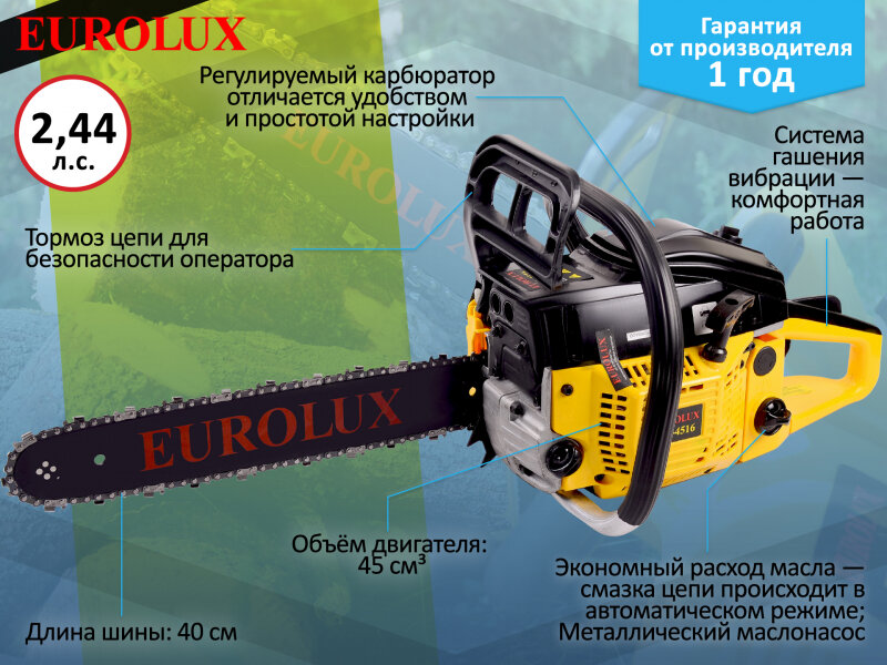Бензопила GS-4516 Eurolux интересное: