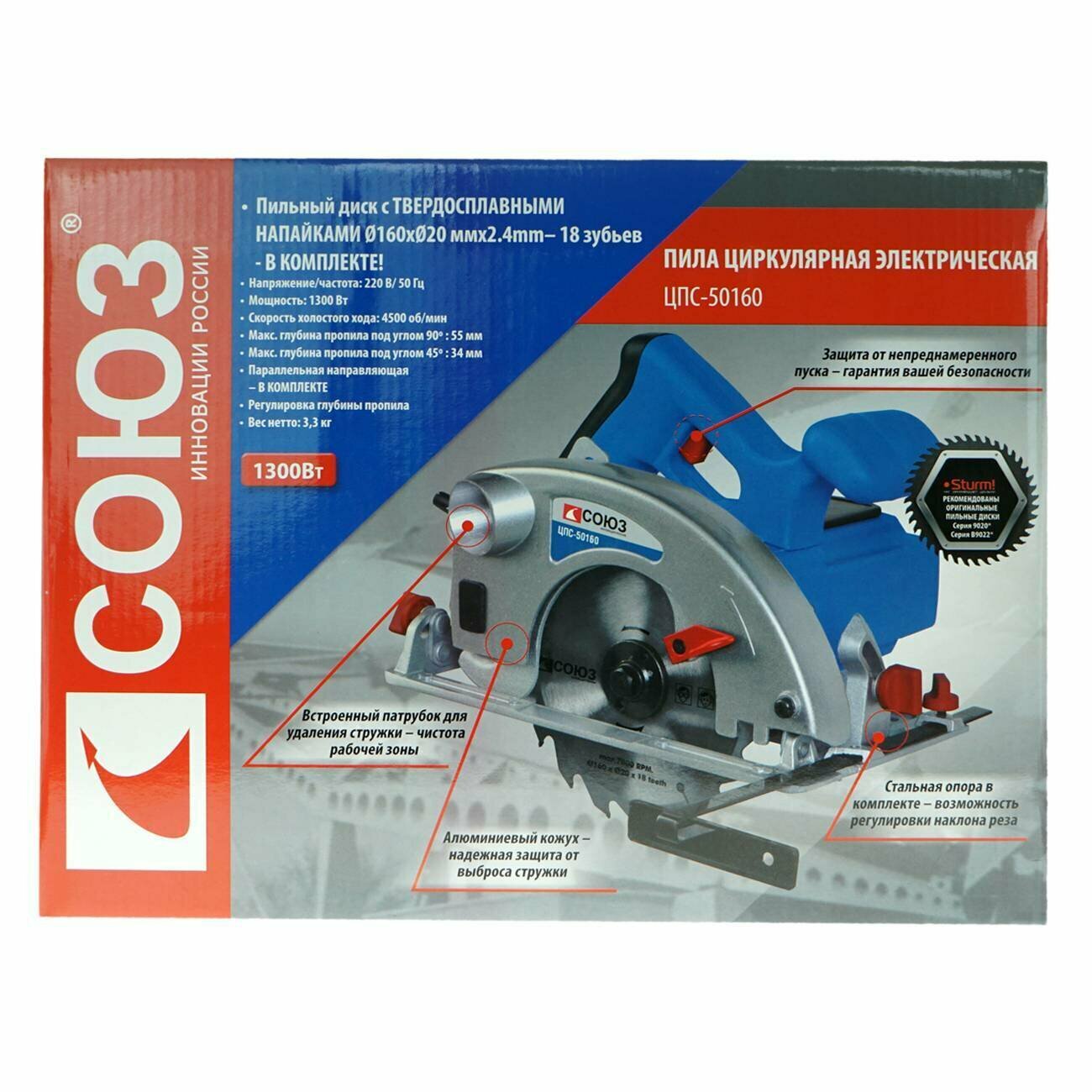 Циркулярная пила СОЮЗ ЦПС-50160 интересное: