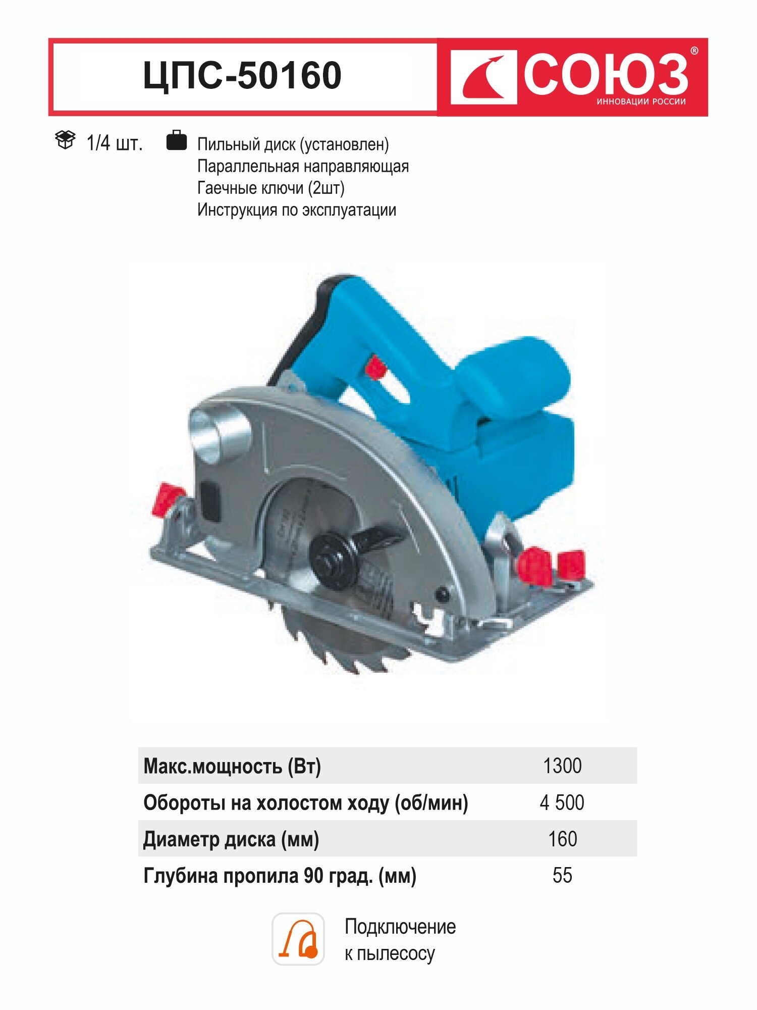 Ниже Вы можете прочитать отзывы на Циркулярная пила СОЮЗ ЦПС-50160, ознакомится с подробными характеристиками, посмотреть интересные обзоры и фотографии на Циркулярная пила СОЮЗ ЦПС-50160.