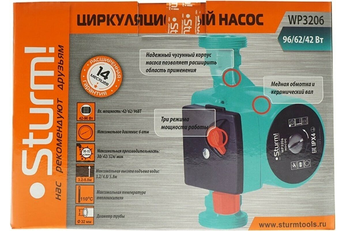 Насос циркуляционный Sturm! WP3206, 3 скорости, 96 Вт