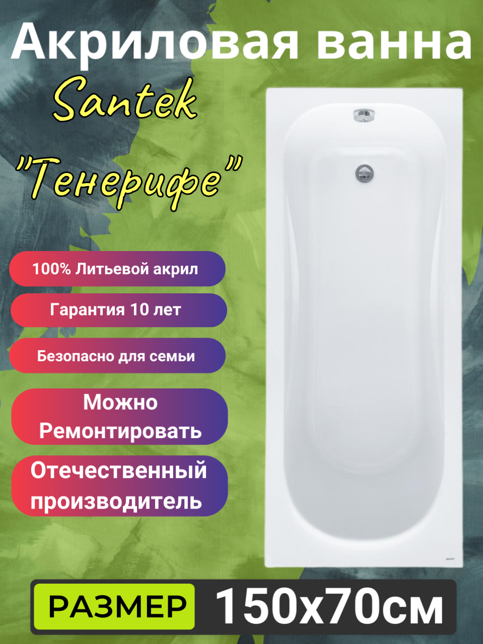 Акриловая ванна 150x70 см Santek Тенерифе 1.WH30.2.213