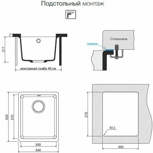 Кухонная мойка OMOIKIRI Kata 34-U-BL 34х42см искусственный гранит/черный