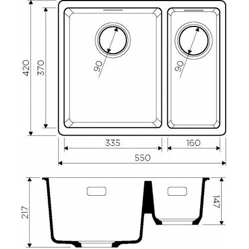 Кухонная мойка двухчашевая OMOIKIRI Kata 55-2-U-BL, искусственный гранит/черный/основная чаша слева