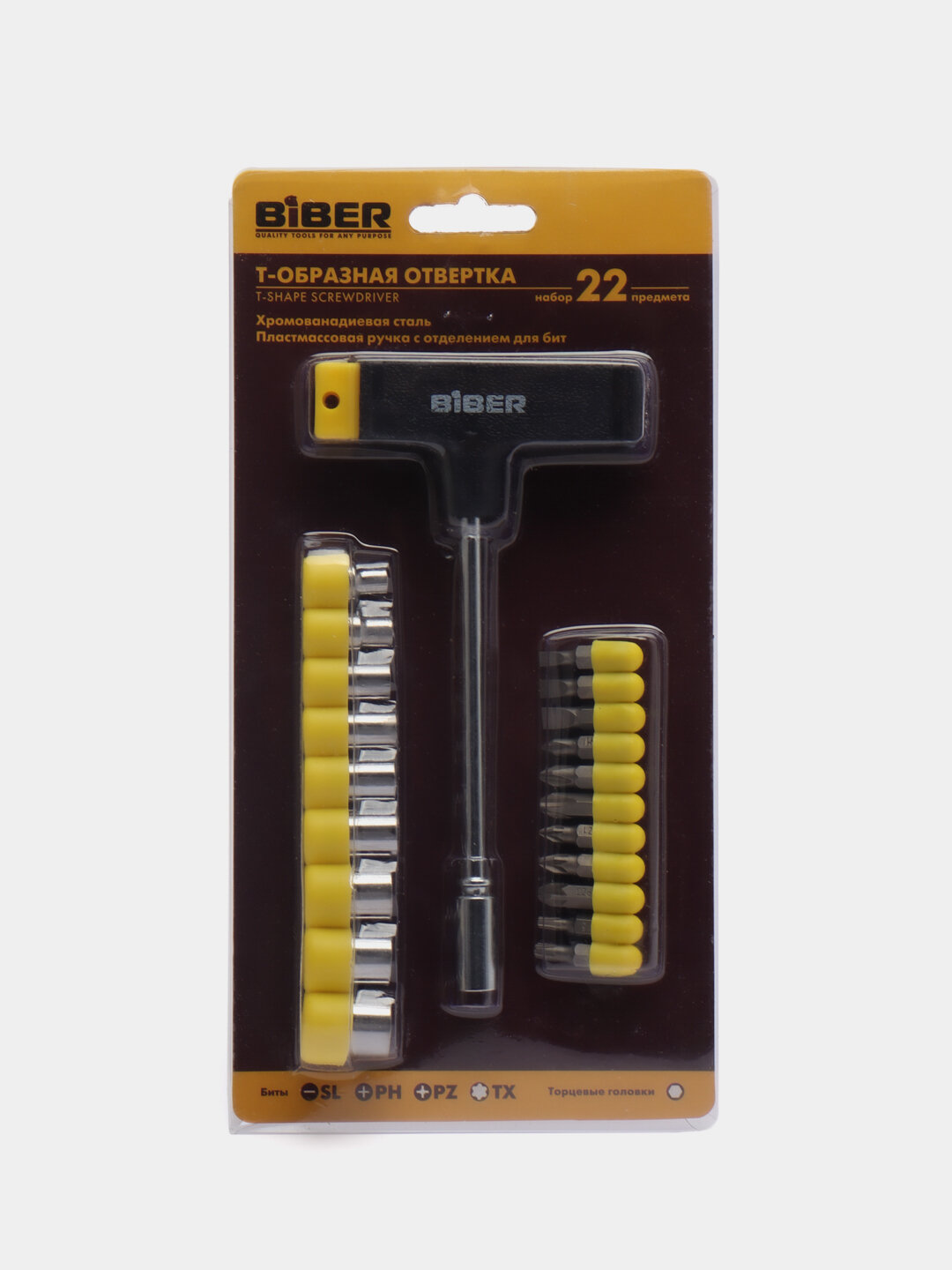 Бибер 85553 Отвертка Т-образная / BIBER 85553 отвертка наборная Т-образная с насадками