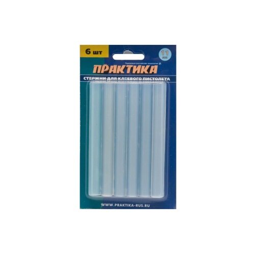 Клей для клеевого пистолета ПРАКТИКА белый, прозрачный, 11 х 100 мм, 6 шт / блистер (641-589)