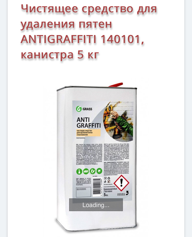 СохранитьGRASS Antigraffiti. Средство для удаления граффити, маркера, скотча, жвачки, клея. 5л. интересное: