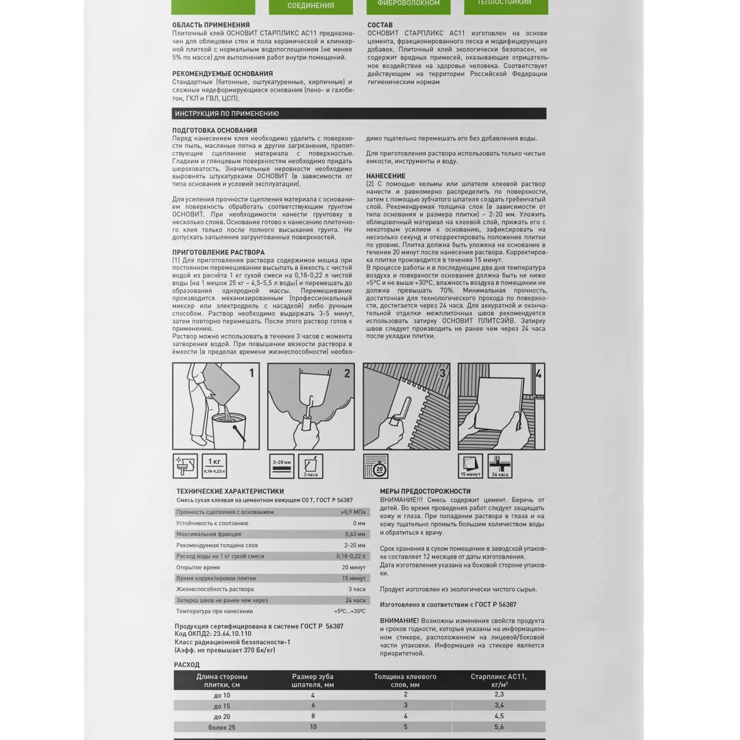 Старпликс AC11 клей универсальный для плитки на пол и стены основит (5кг) интересное: