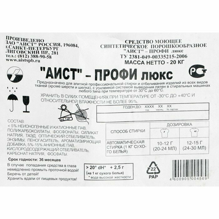Стиральный порошок "Аист - Профи Люкс", автомат, 20 кг интересное: