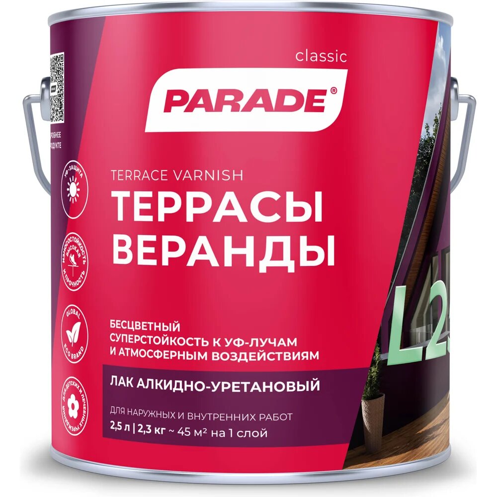 Лак алкидно-уретановый Parade L25 для террас глянцевый 2,5л интересное: