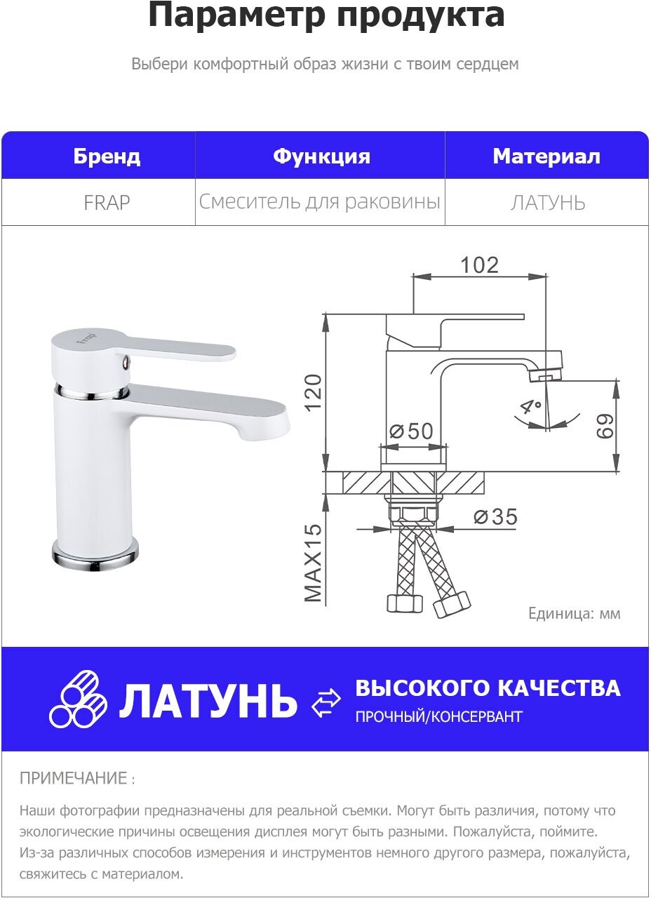 Смеситель для раковины, Frap, корот изл, с картриджем, бел, F1041