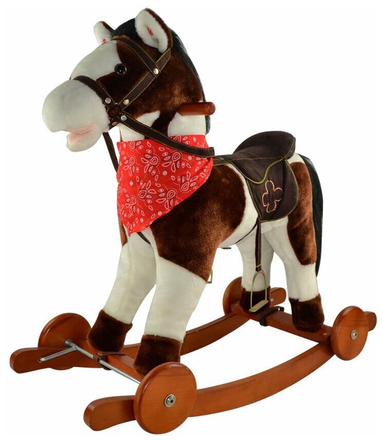Качалка-лошадка с колёсами Pituso белый с коричневым