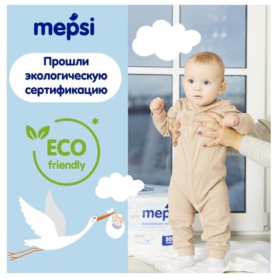 Пеленки детские впитывающие MEPSI, 60х60, 30 шт.