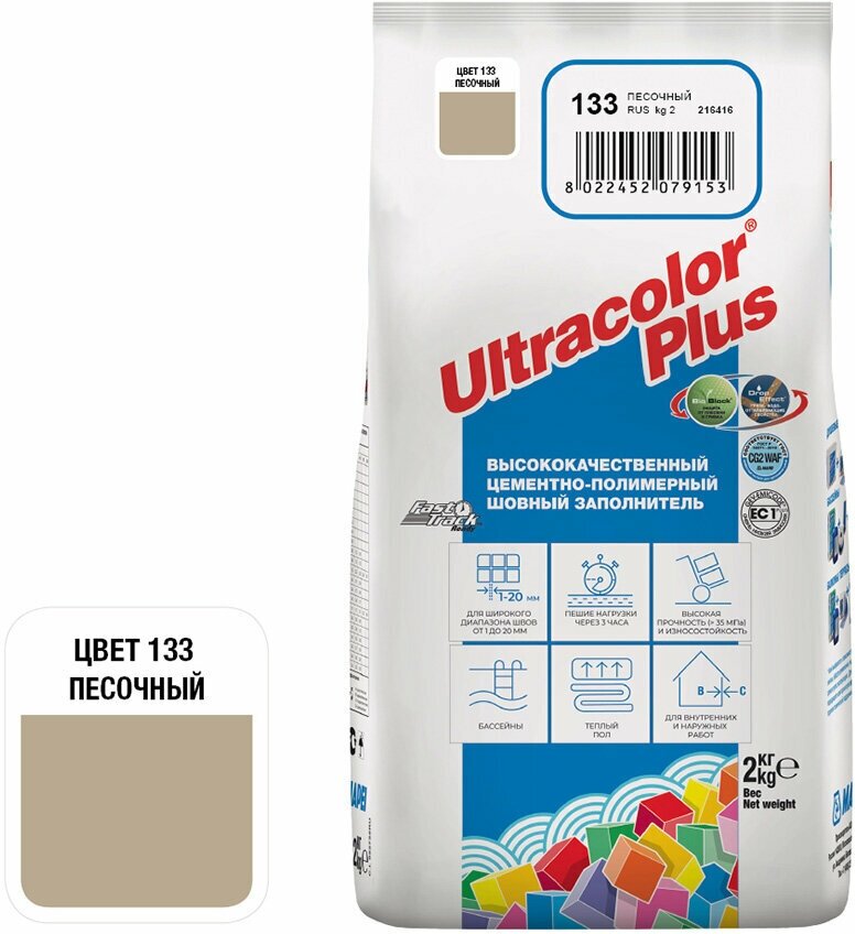 Мапеи Ultracolor Plus №133 затирка д/швов Песочный 2кг