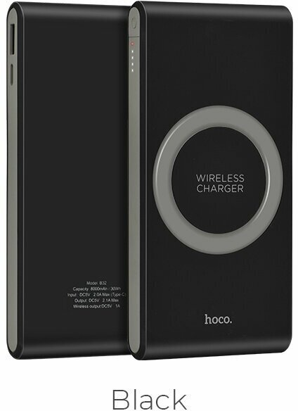 Внешний аккумулятор Hoco B32 Energetic с функцией беспроводной зарядки (8000 мАч), черный