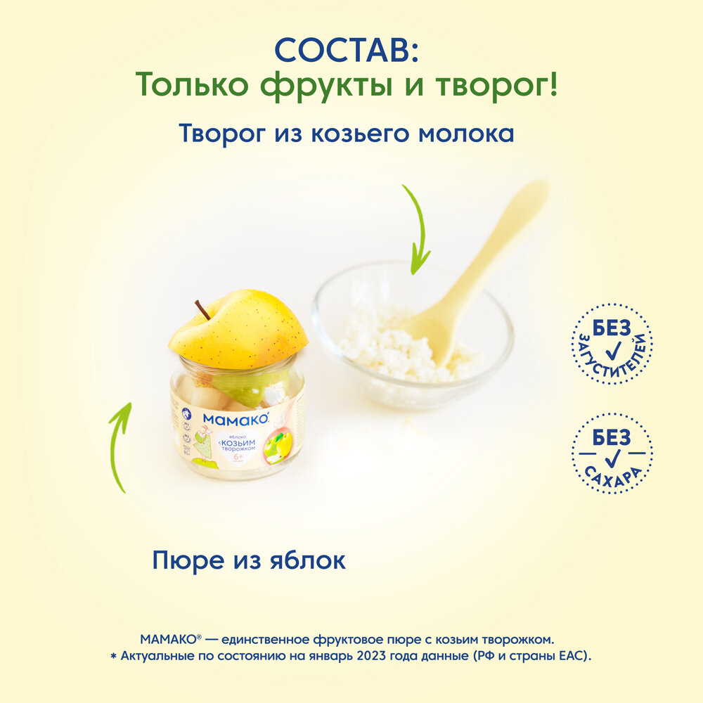 Пюре мамако из яблоко с козьим творожком, 80г, 1 шт. интересное: