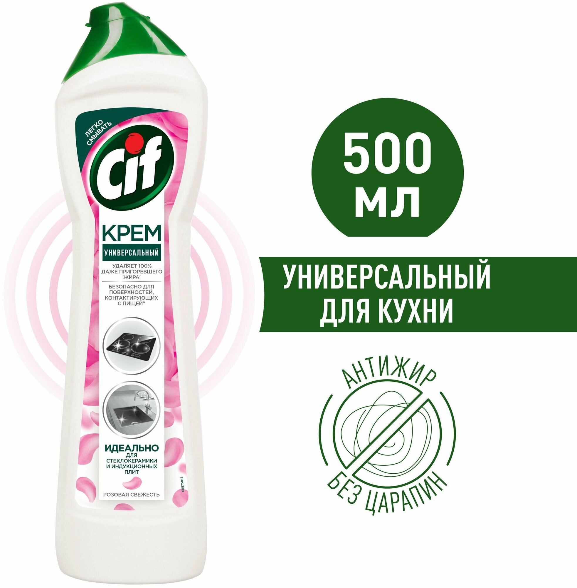 Cif Розовая Свежесть, универсальный чистящий крем для кухни, для плит и стеклокерамики, 500 мл