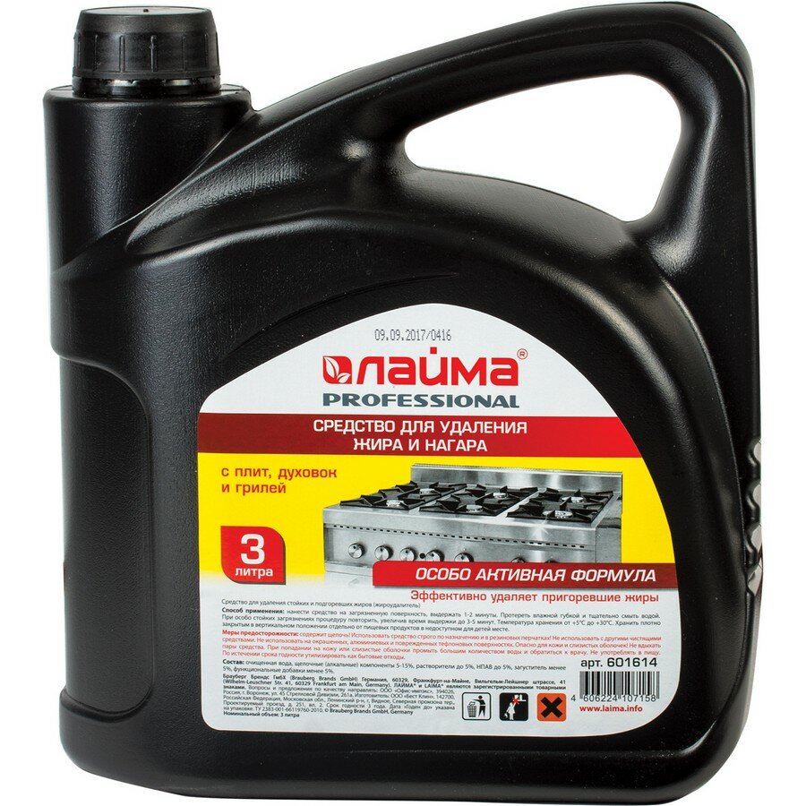 Лайма Средство для чистки плит, духовок, грилей от жира/нагара 3 л, Антижир 601614 .